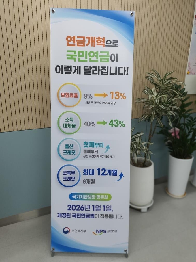 보험료율 인상: 기존 9%→9.5%로 0.5% 인상된다.(2033년까지 매년 0.5%씩 인상해 13%가 목표다.)