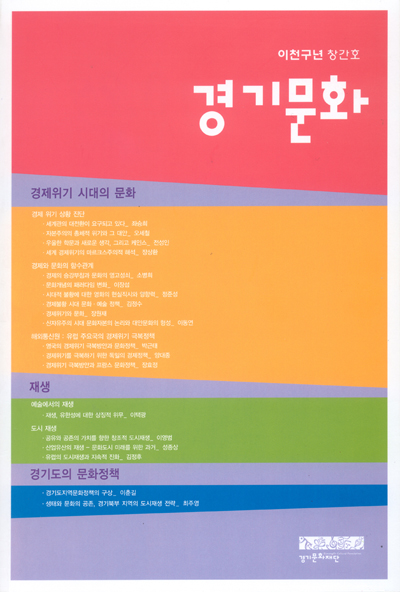 경기문화재단이 문화시론과 정책, 지역문화의 담론을 활성화하기 위해 무크지 ‘경기문화’를 10월 20일자로 발간했다.