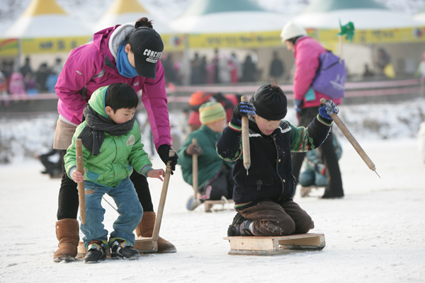 뿐만 아니라 5000명이 이용할 수 있는 얼음놀이 광장은 도시에선 구경도 하기 어려운 전통썰매, 눈썰매, 썰매볼링, 팽이치기.투호등 전통놀이문화를 체험할 수 있다.