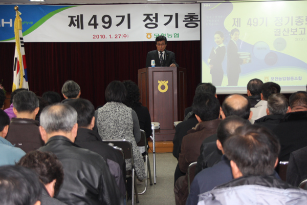 이날 정기총회에는 조합 대의원과 영농회장 등 100여명이 참석했으며, 2009년 결산감사보고와 2010년 사업계획 수립 및 정관개정 등을 심의했다.