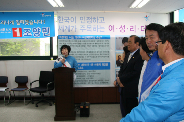 6·2지방선거 경기도의원 용인 제7선거구(신봉,동천,상현1·2,성복) 한나라당 조양민 후보는 지난 13일 수지구 부강타워에서 한선교 국회의원과 임수복 전 경기도지사 및 수지지역 시·도의원 후보와 지지자 등 200여명이 참석한 가운데 개소식을 열었다.