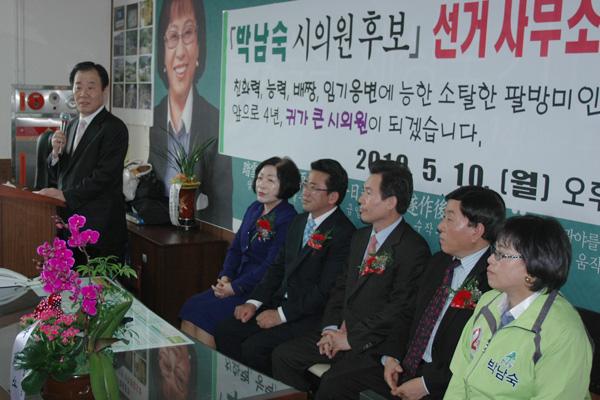 민주당 용인시의원 마 선거구(신갈,상갈,기흥,서농) 박남숙 후보는 지난 10일 기흥 지구촌교회에서 선거사무실 개소식을 열고 지방선거 필승을 다짐했다.