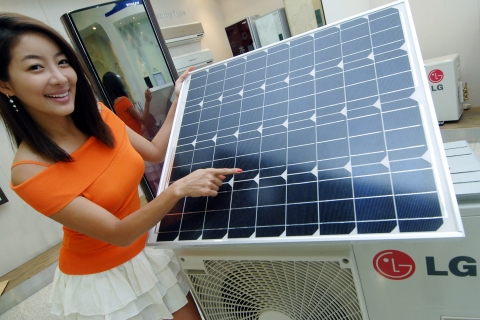 LG전자는 에어컨 실외기 상단에 태양전지 모듈을 채용해 에어컨 보조 전원으로 사용할 수 있도록 한 친환경 태양전지 하이브리드 에어컨을 출시한다