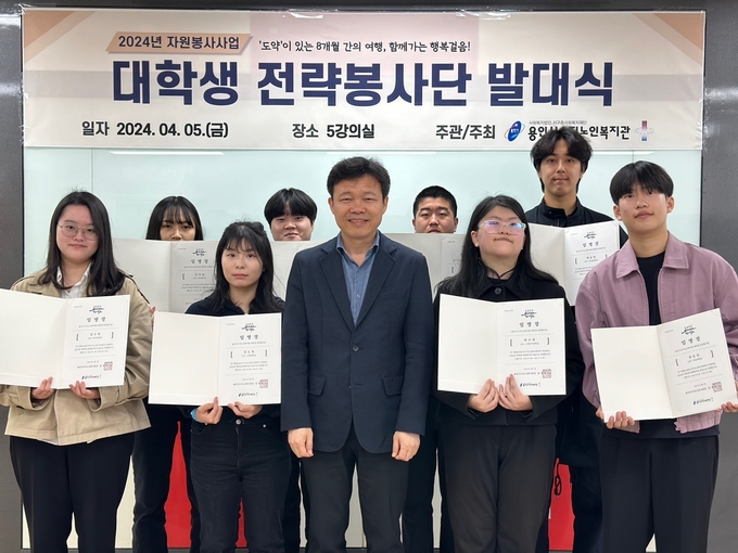 용인신문 | 지난 5일, 용인시수지노인복지관(관장 김전호)은 사회복지 및 관련학과 재학생 8명으로 구성된 ‘전략봉사단 발대식’을 열고 자원봉사 기본교육, 임명장 수여 및 단체 사진 촬영, 전략봉사단 사업 소개순으로 진행했다.