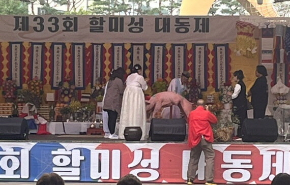 올해는 할미산성 대신 동백호수공원 야외무대에 제사상을 차리고 공원 내에서 질병 및 안 좋은 구설의 소멸과 무병장수와 나라의 태평 등을 신령께 빌고 작두타기 등 퍼포먼스를 진행했다.