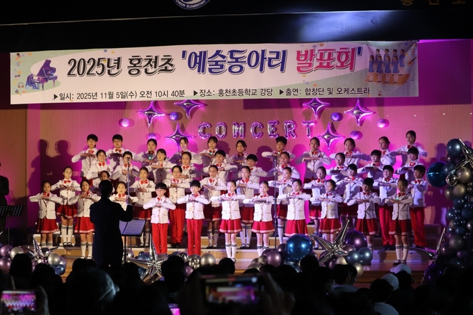 홍천초등학교는 올해 경기도교육청으로부터 ‘예술중점학교’로 지정됐다. 지정을 기념해 1인 1악기 교육, 국악 특강, 빛깔있는 레인보우 발표회, 문화예술 체험 활동, 예술동아리 등굣길 음악회, 작은 음악회, 버스킹, 홍천 아트갤러리 전시회 등 폭넓은 문화예술교육을 실천하고 있다. 이번 ‘2025 용인 예술로 어울림 한마당’ 연주도 작년에 이어 2년 연속 연주에 참여하며 예술교육의 우수성을 다시 한번 입증했다.