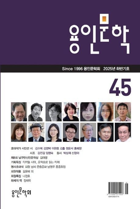 용인신문 | 용인문학회(회장 양석)는 2025년 '용인문학' 하반기호(45호)를 출간했다. 이번 '용인문학'에는 제8회 남구만신인문학상 수상자인 김태영씨의 당선작 ‘계단은 스스로의 각도를 의심한다’외 6편이 실렸다.