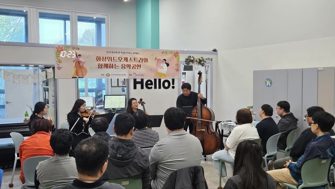 화성위드오케스트라와 함께하는 음악 공연을 관람하는 모습. 근로자들의 문화·예술적 경험과 정서적 만족도를 높이기 위한 센터의 다양한 재활 프로그램중 하나다