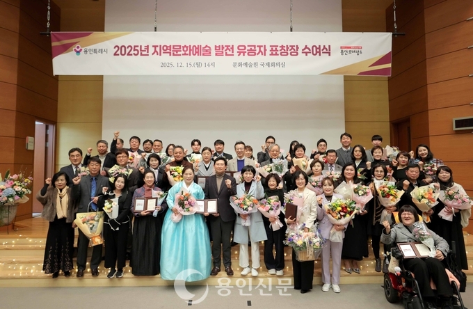 용인신문 | 용인시는 15일 문화예술원 국제회의실에서 ‘2025년 지역문화예술 발전 유공자 표창장 수여식’을 열었다. 행사에는 이상일 시장을 비롯해 문화예술 단체 관계자와 수상자, 시민 등 150여 명이 참석했다.