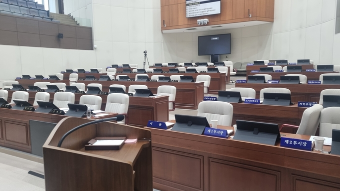 지난 23일 시의원들이 모두 퇴장한 본회의장 모습.