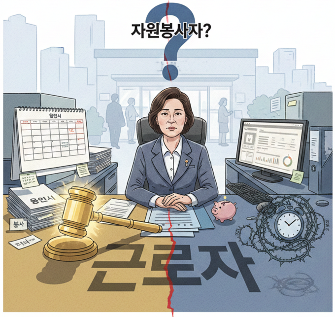 하지만 ‘사무국장’이라는 명함 뒤에 가려진 처우는 열악하다. 매달 지급받는 금액은 최저임금에도 못 미치는 ‘봉사 실비’가 전부다. 실질적인 업무지시를 받으며 전일제 근무를 수행함에도 불구하고, 조례상 ‘자원봉사자’라는 이유로 4대 보험 가입은 물론 퇴직금 적립조차 되지 않는다. 업무 중 사고가 발생해도 산업재해 보상을 기대하기 어려운 실정이다.