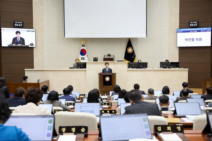 지난 5일 박인철 용인시의원이 시의회 본회의 5분 발언을 하고 있다.