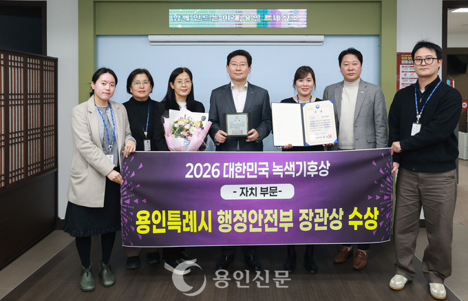 용인신문 | 용인시는 25일 국회기후변화포럼이 주최하는 ‘2026 대한민국 녹색기후상 자치 부문’에서 행정안전부장관상을 수상했다. 올해로 16회를 맞은 ‘대한민국 녹색기후상’은 범국민적 기후위기 대응과 탄소중립 실현에 기여한 단체와 개인을 선정해 매년 시상하고 있다.