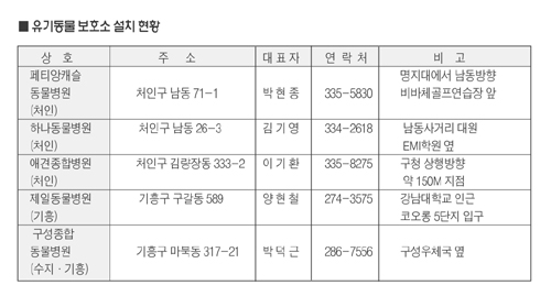용인시 처인, 기흥, 수지구청에서는 홈페이지 고시/공고 란에 적게는 한 달에 두 번, 많게는 매주 유기동물에 대한 공고를 올린다. 포획장소와 품종, 사진도 올려져 있으므로 키우던 동물이 있는지 잘 살펴보는 것이 좋다.