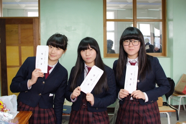 이날 졸업생들은 10~20만원씩 총 800만원의 장학금을 지급받았으며 이는 지역사회와 학부모들에게 미담 사례로 기억 됐다.
