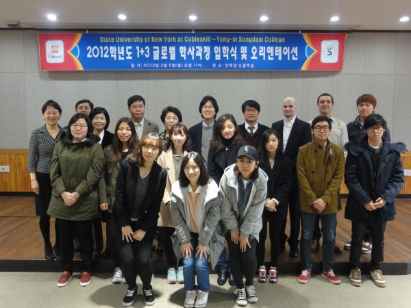용인송담대학교(총장 최성식) 국제교육원의 뉴욕주립대학교(코블스키 캠퍼스) 제1기 1+3글로벌 학사과정 총11명의 입학식이 지난 5일 산학관 스칼라홀에서 열렸다.