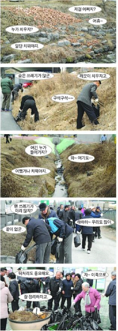 이날 청소구역은 주로 대로와 개천 등으로 쓰레기는 집중되지만 처리가 불편한 지역이었으나 참가자들은 어렵게 청소를 마친 후 깨끗해진 거리를 보고 기뻐하는 모습이었다.