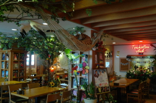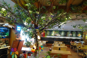 처인구 유일의 정통 패밀리레스토랑임을 자랑하며 그에 걸 맞는 넓은 주차장을 비롯해 아이가 좋아할 수 있는 폭포, 분수, 그네는 물론 내부 인테리어에도 동·식물을 장식하는 등 모처럼의 가족나들이를 품격, 맛, 즐거움까지 만끽하도록 꾸몄다.