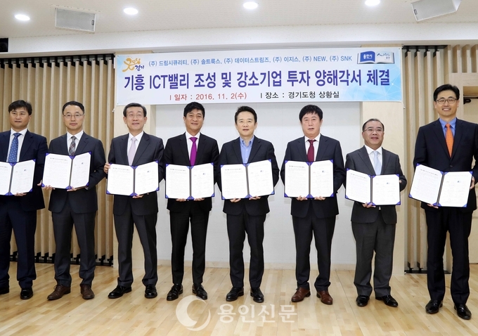 용인시 기흥구에 국내 최대 규모 지식산업센터인 ‘기흥ICT밸리’가 조성된다. 정찬민 시장은 지난 2일 경기도청 상황실에서 경기도와 용인시, (주)SNK, 입주기업 등과 기흥ICT밸리 조성 및 강소기업 투자 양해각서를 체결했다.