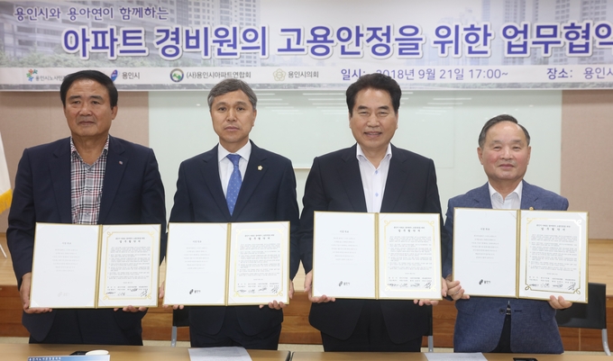 용인시와 (사)용인아파트연합회가 아파트 경비원 업무환경 및 처우 개선을 위해 손을 맞잡났다.