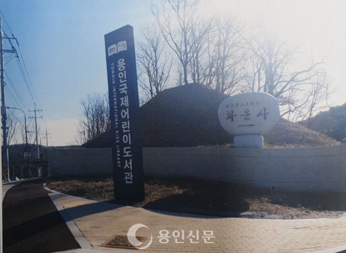 멱조현터널 정상부 화운사 표석 지하에 터널이 매몰돼 있다.