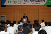 농협 용인시지부(지부장 한기섭)은 용인지역내 조합장과 임원들 100여 명이 참석한 가운데 한화콘도에서 지난 3일부터 이틀간 핵심리더 워크숍을 개최했다. 이번 워크숍 행사는 글로벌 시대에 사는 지혜로운 농협의 핵심리더란 주제로 한기섭 지부장의 특강과, 남상진 박사의 웃음과 건강 그리고 성공, 한국언어문화원 김양호 원장의 지도자의 스피치기법 등의 특강을 실시했다. 이날 한기섭 지부장은 임직원간의 정보교환을 통한 서로 화합 할 수 있는 자리를 마련하면서, 농업농촌의 어려움을 이겨내고 농업인의 실익증대에 앞장서 줄 것을 당부했다.