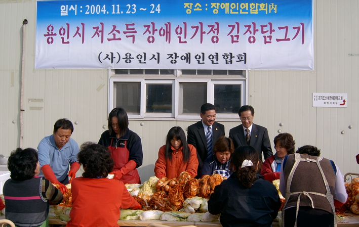 (사)용인시장애인연합회(회장 김기호)는 지난달 개최했던 ‘사랑의 일일찻집’ 수익금과 후원금으로 김장을 담가 26일 저소득 장애인 300여 가정에 전달했다.