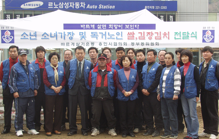바르게살기 용인시협의회 동부동위원회(위원장 고인관)는 지난달 27일 마평동 위원회사무실 앞에서 소년소녀가장 및 독거노인 쌀, 김장김치 전달식을 갖고 이웃의 정을 나눴다.