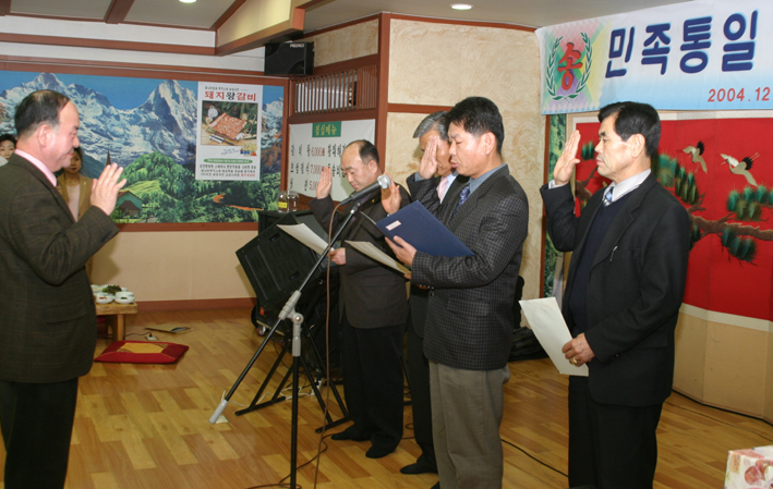 김진석 부회장의 민통회원신조 낭독으로 시작된 이날 행사는 신입회원 최용, 최종필, 이홍걸, 김만영씨의 소개와 신입회원 선서, 뺏지와 회원패 수여로 이어졌고, 서석윤, 이두희, 김선호 회원에게는 표창이 전달됐다.