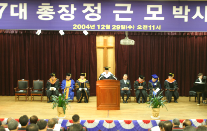 명지대학교 제7대 총장으로 선임된 한국과학기술한림원 정근모(65)원장이 29일 용인 자연캠퍼스 명진당 강당에서 취임예배를 갖고 총장으로 공식 취임했다.