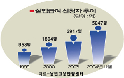용인고용안정센터(센터장 하창용)에 다르면 올들어 지난해 11월 말까지 실업급여 신청자는 5295명으로 급여를 받은 실직자는 5247명에 달하고 있다.