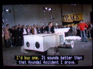 ○…영국의 대표적인 공영방송인 BBC가 한국산 자동차들을 ‘조롱’에 가까운 식으로 비판하는 프로그램을 주요시간대에 방영해 파문이 일고 있다. BBC 2채널은 지난 26일(일) 저녁 황금시간대인 8시 30분과 27일(월) 오후 10시 50분(재방) 두 차례에 걸쳐 `$$`BBC TOP GEAR`$$` “태평양 주변국가의 자동차들을 탐방해보자” (We take a look at cars from the Pacific rim )라는 프로그램 한국 자동차에는 좋은 점이 하나도 없다”고 비난하고 있다. 마지막엔 "한국자동차를 타는 대신 조악한 가전제품을 타겠다"라고까지 했다는데.. - 20%나 증가한 영국내 한국자동차 판매가 배아프다고 솔직히 밝히는게 오히려 나을 듯.