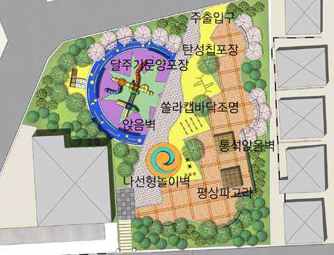 이에 달주기 문양 포장과 판석 및 탄성칩포장 등 포장 패턴을 다양하게 해 어린이들의 호기심 충족과 교육적 효과를 기대할 것으로 보인다.