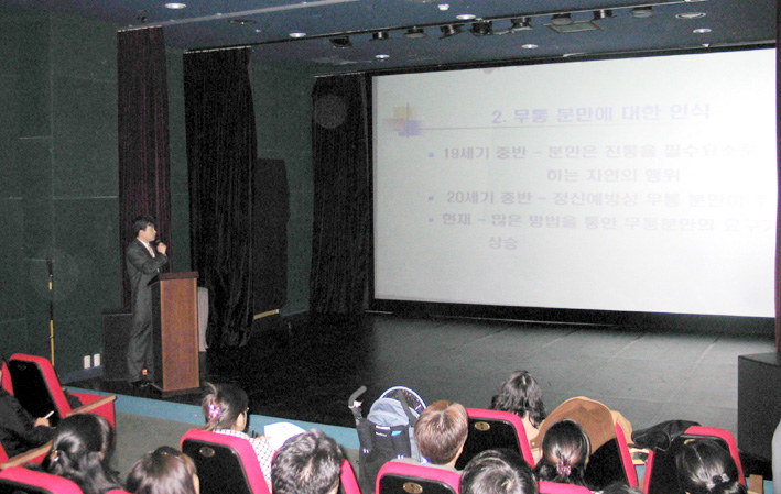 이날 행사에서 이성중 마취과 원장은 ‘무통분만은 꼭 해야 하나?’라는 주제로 우리나라의 출산형태 및 무통분만의 현황, 무통분만의 장단점을 설명하고 출산에 대한 두려움을 줄일 수 있는 방법들을 소개했다.