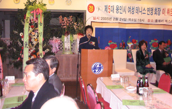 용인시 생활체육연합회 여성테니스연맹은 지난 24일 고림동 플레리 레스토랑에서 회장 이․취임식을 갖고 조덕화씨를 제5대 회장으로 추대했다.