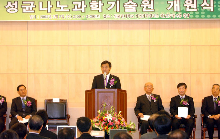 손학규 경기도지사가 3월 2일 오후 2시 성균관대학교 종합연구동 8층 강당에서 열린 성균관대학교 나노과학기술원 개소식에 참석하여 축사를 하고 있다.