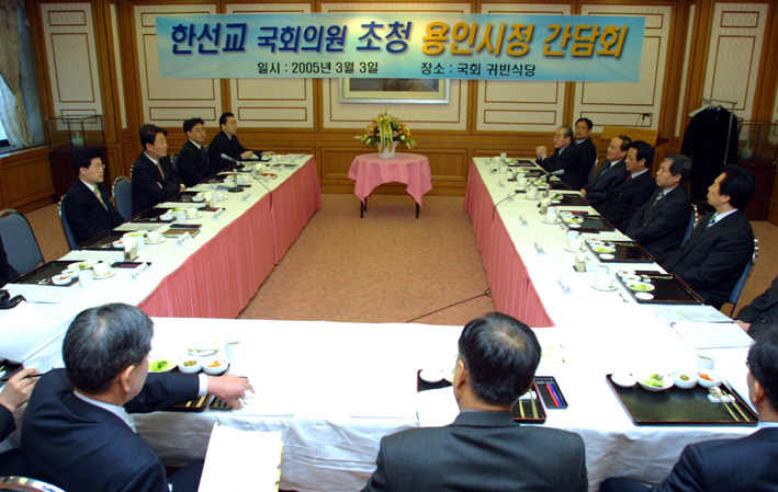 용인시는 지난 3일 국회에서 용인출신 우제창 의원(용인갑)·한선교 의원(용인을)과 이정문 시장, 이병만 부시장을 비롯한 시 주요간부들이 참석한 가운데 시정주요현안 사항 해결을 위한 간담회를 가졌다.