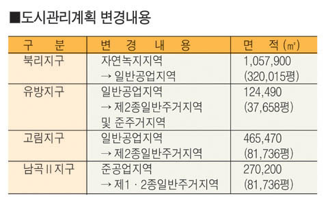 또한 양지면 남곡리 일원 8만2000여평을 포함하는 남곡Ⅱ지구는 준공업지역에서 제1․2종 일반주거지역으로 용도 변경할 계획이다.