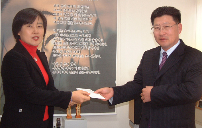 지난 2일 서 사장은 본사(사장 박숙현)를 방문, 가정형편이 어려운 학생들을 돕는 데 써 달라며 100만원의 장학금을 전달했다.