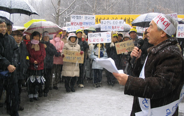 이들은 시가 지난해 12월 신봉동 산 12번지 일대의 도로신설(안)을 공람공고하자 지난 1월부터 신설도로 계획안을 철회할 것을 요구했다.