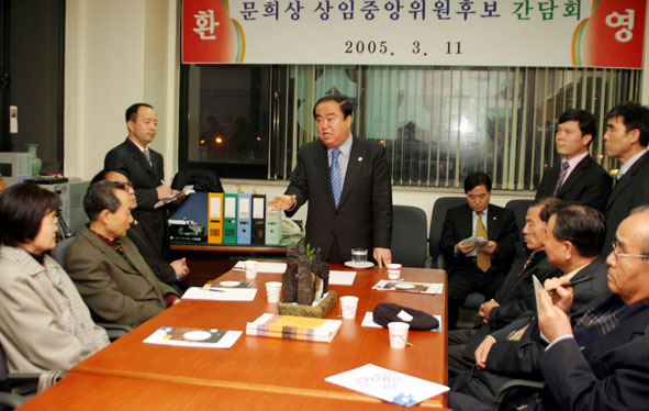 문희상 열린우리당 상임중앙위원 후보는 지난 11일 우제창 국회의원(용인갑)사무실을 방문, 용인지역 갑·을 당원협의회 당원들과 간담회를 가졌다.