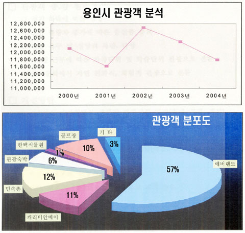 시의 ‘용인시 관광객 분석 및 향후 전략’에 따르면 용인시의 관광객은 지난 2002년을 기준으로 매년 3~4%씩 감소하고 있는 것으로 나타났으며 특히, 상류 관광객은 늘어나는데 반해 중, 하위층의 일반 서민 관광객들의 감소 현상이 심화된 것으로 조사됐다.
