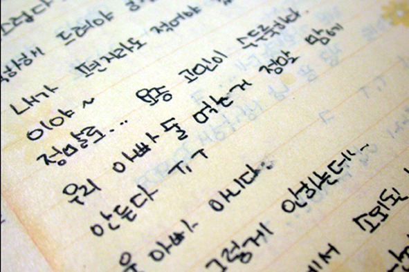 지난 16일 상습적으로 가정폭력을 휘둘러온 아버지(40)를 넥타이로 목졸라 살해한(존속살인) 혐의로 구속된 여중생 이아무개(15·강원도 강릉)양의 일기장 내용 일부이다.