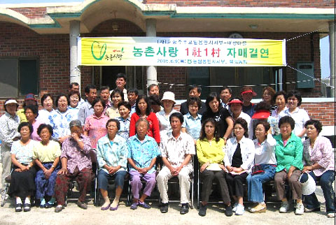 이날 식을 마친 후 고향주부모임 용인시지부 회원들은 일손부족으로 어려움을 겪고 있는 마을을 위해 가지잎 따기, 수박 곁순치기, 녹두밭매기, 배 열매 솎아주기 등 농가일손돕기를 실시했으며 자매결연을 축하하는 기념품을 마을에 기증했다.