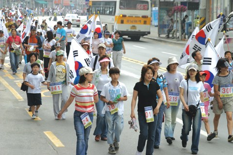 한편 이날 행사는 일본의 독도망언을 규탄하고 애국심 고취를 위해 참가자500여명에게 태극기를 지급해 이들이 태극기를 들고 거리를 활보하는 장관을 연출, 그 의미를 더했다.