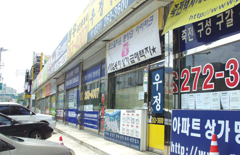 용인 수지· 죽전지역 부동산 중개업소들이 서울 송파구와 분당에 이어 집단 동맹휴업에 들어갔다. 전국부동산중개업협회는 부동산정책 실패를 중개업소들에 돌리는 정부에 항의하기 위해 수지 죽전동 일대 700여개 부동산 중개업소가 13일부터 1주일간 집단 휴업을 하기로 했다고 밝혔다. <사진/김미숙 기자>