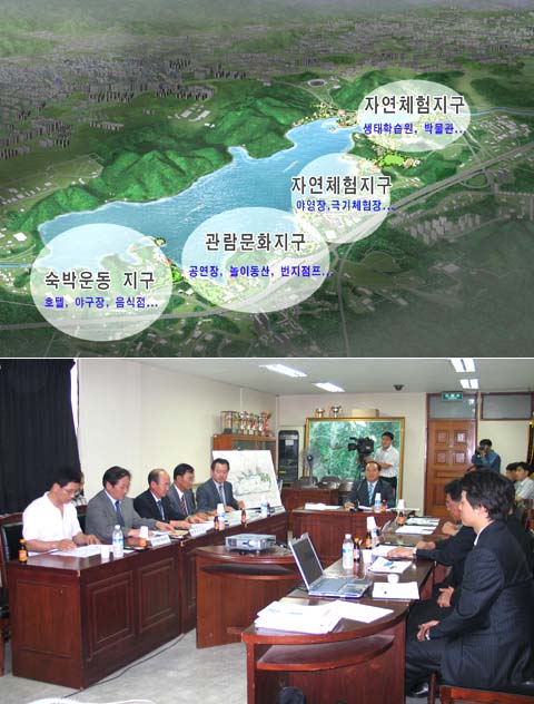 또한 도입시설별 개발전략을 세워 계획대상지 조건과 표적시장의 요구조건 등을 검토, 전체 사업대상지를 숙박운동지구, 관람문화지구, 자연체험지구, 친수환경지구로 나누어 개발한다는 방침이다.