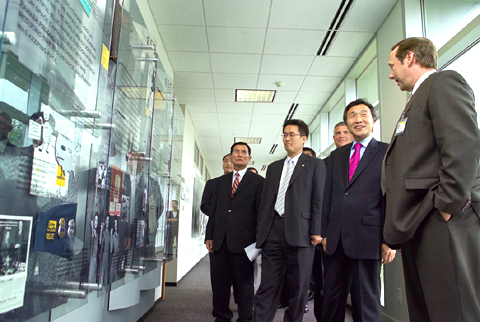 사진설명:손학규도지사는 지난 21일 미국 클리블랜드 파커 하니핀 본사에서 투자 MOU를 체결하기전 본사를 둘러보고 있다.