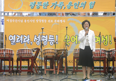 용인여성상담소(소장 양해경)가 ‘열려라, 성평등! 웃어라, 여성!’이란 주제로 특별히 준비한 이날 선포식에는 이정문 시장과 이우현 시의회 의장, 김후광 용인경찰서장, 성백륜 한국토지공사용인지사장이 참석해 양성평등 선언문을 낭독하고 정치, 민생, 직장내에서 남녀가 평등하게 일할 수 있는 풍토를 조성할 것을 약속했다.