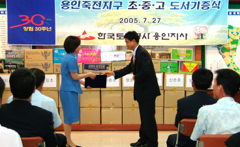 한국토지공사 용인지사(지사장 성백륜)는 지난달 27일 죽전 지구내 총 14개교에 약 8500여권의 각종 도서를 기증했다.